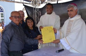 Até então, o terreno onde fica a igreja de Nossa Senhora Aparecida na comunidade Serra Aparecida era de propriedade do casal Mário Monteira e Margarida Monteiro. Hoje, no final da Missa, o casal entregou a Dom Plínio um documento de escritura comprovando a doação do terreno para a paróquia Nossa Senhora do Patrocínio. Ao recebê-lo, o bispo diante da comunidade fez a entrega do documento ao pároco de Pio IX, Pe. Francisco Feitosa, responsável pelo trabalho pastoral no município.