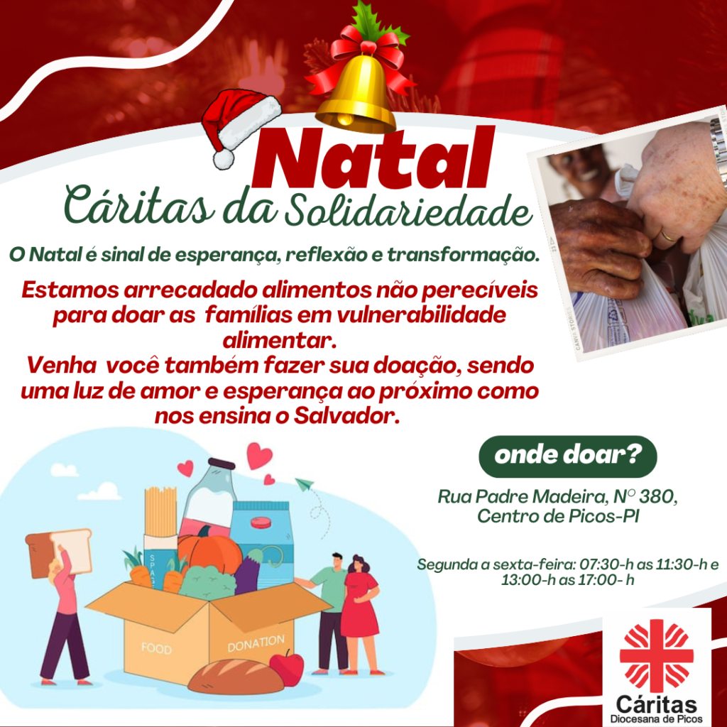 A Cáritas Diocesana de Picos está promovendo, neste fim de ano, uma Campanha de Natal Solidária. O objetivo é arrecadar alimentos não perecíveis para atender famílias em situação de vulnerabilidade alimentar na região, oferecendo um gesto de amor e solidariedade em um dos períodos mais significativos do ano. A campanha teve início nesta segunda-feira, 09 […]