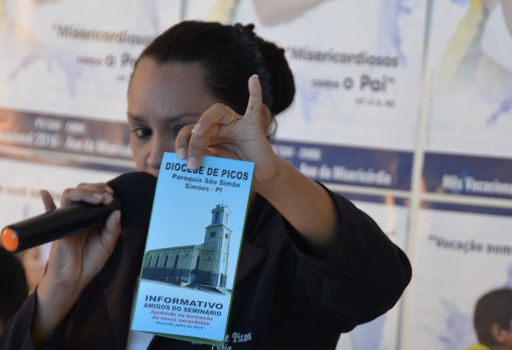 Além da apresentação do material do Mês Vocacional realizada por Dom Plínio, a Secretária do Projeto Amigos do Seminário, Maria Sátira, apresentou a metodologia do Projeto, dando ênfase a sua importância na formação dos futuros padres da Diocese de Picos.