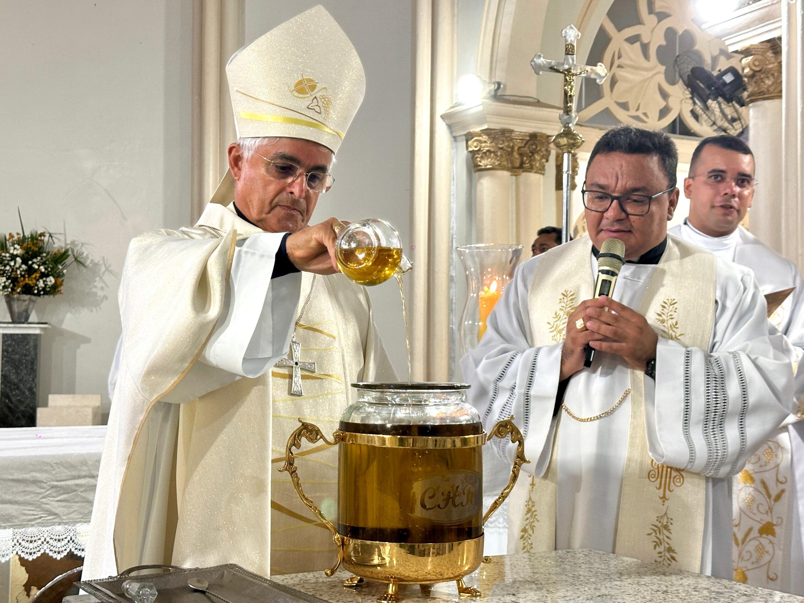Durante a Missa do Crisma, os sacerdotes renovaram suas promessas sacerdotais diante do bispo, reafirmando o compromisso com a missão pastoral. Também foram abençoados os Óleos dos Enfermos e dos Catecúmenos, além da consagração do Óleo do Crisma, utilizados ao longo do ano nas celebrações sacramentais em toda a Diocese.